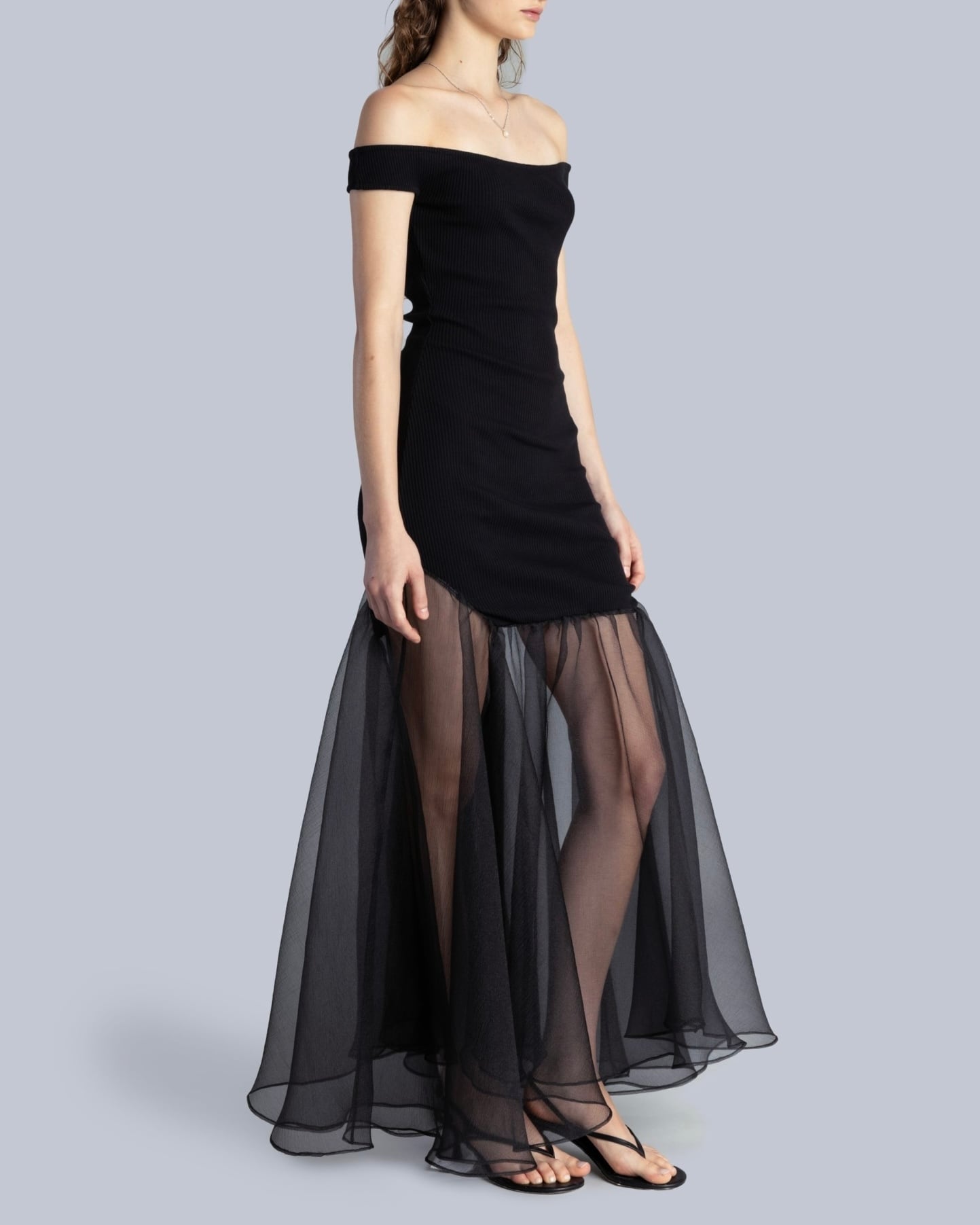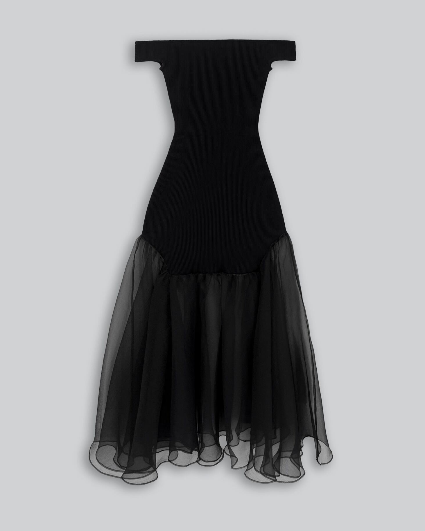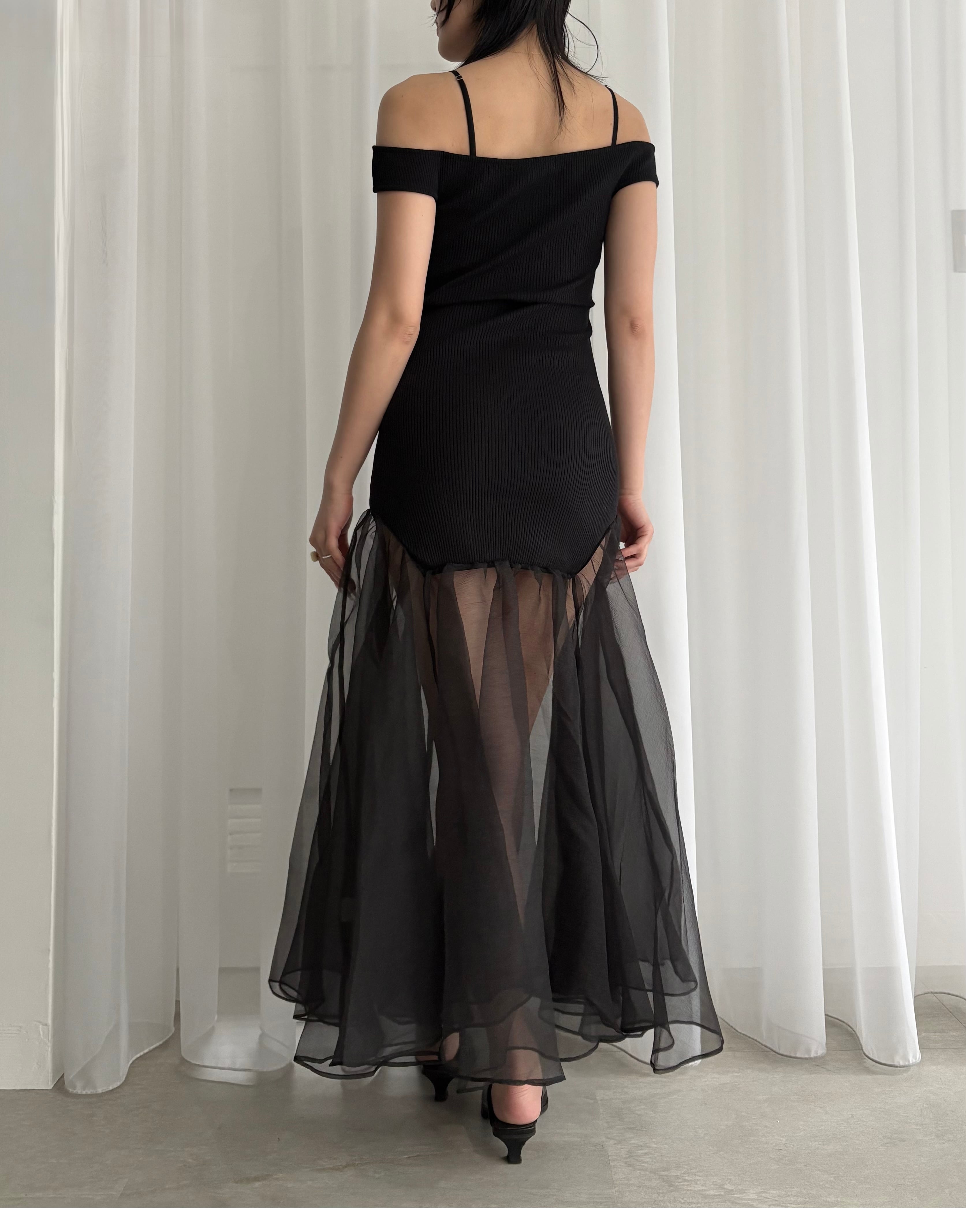 Off shoulder rib&organza dress / ESTHE