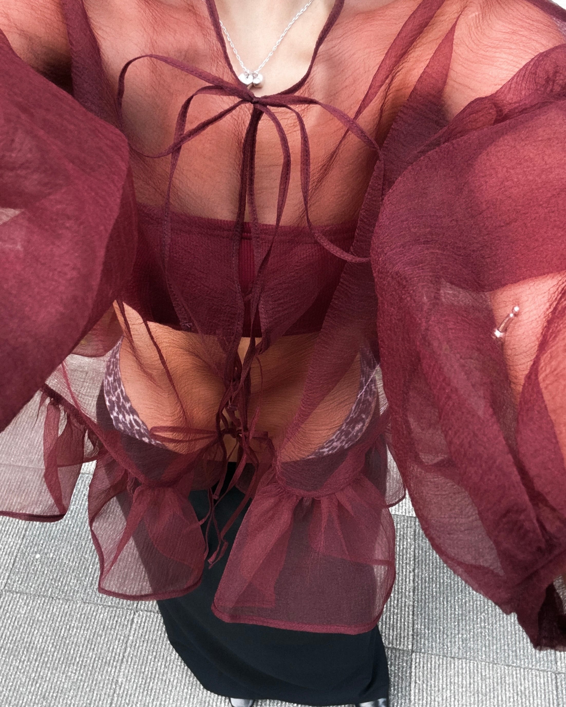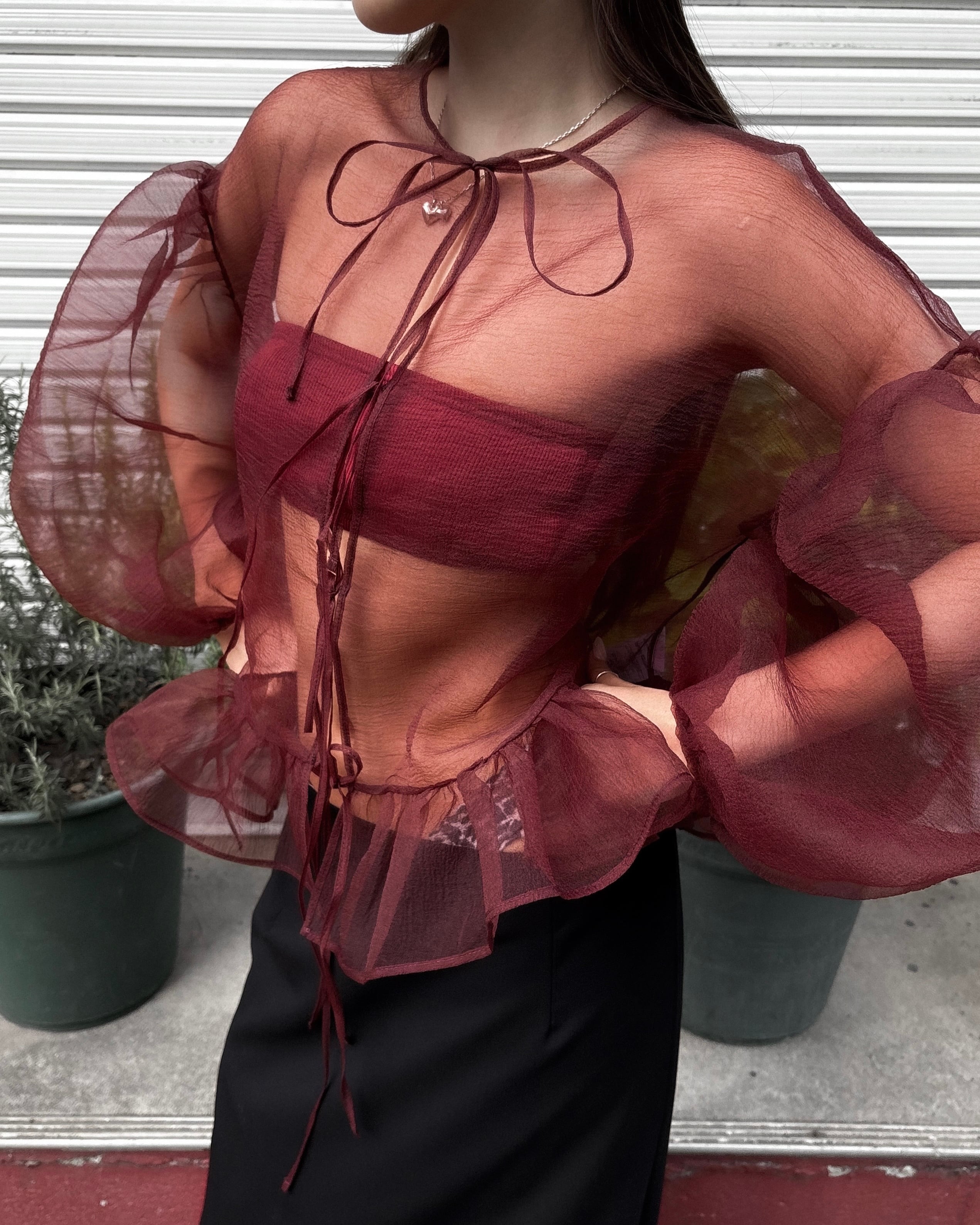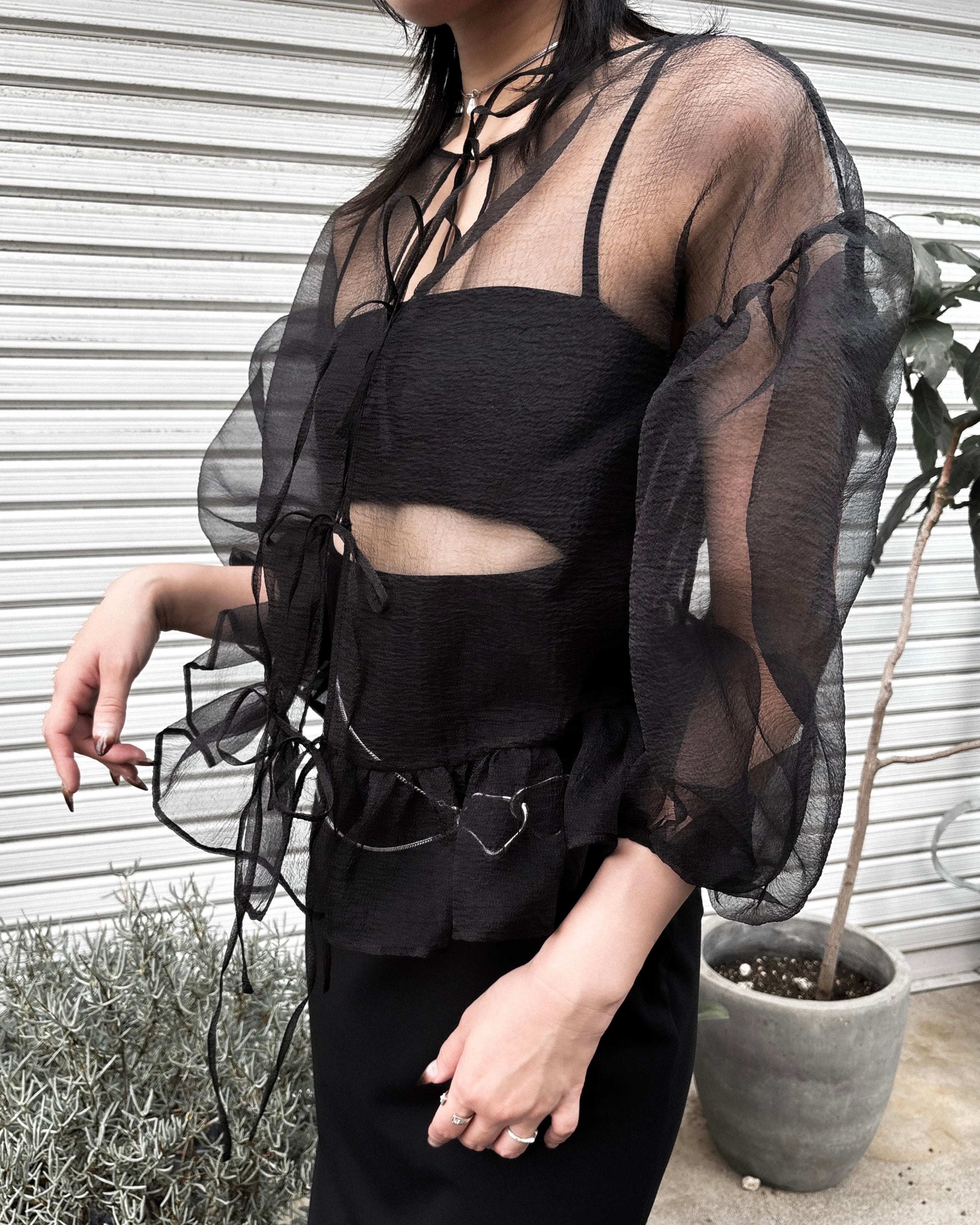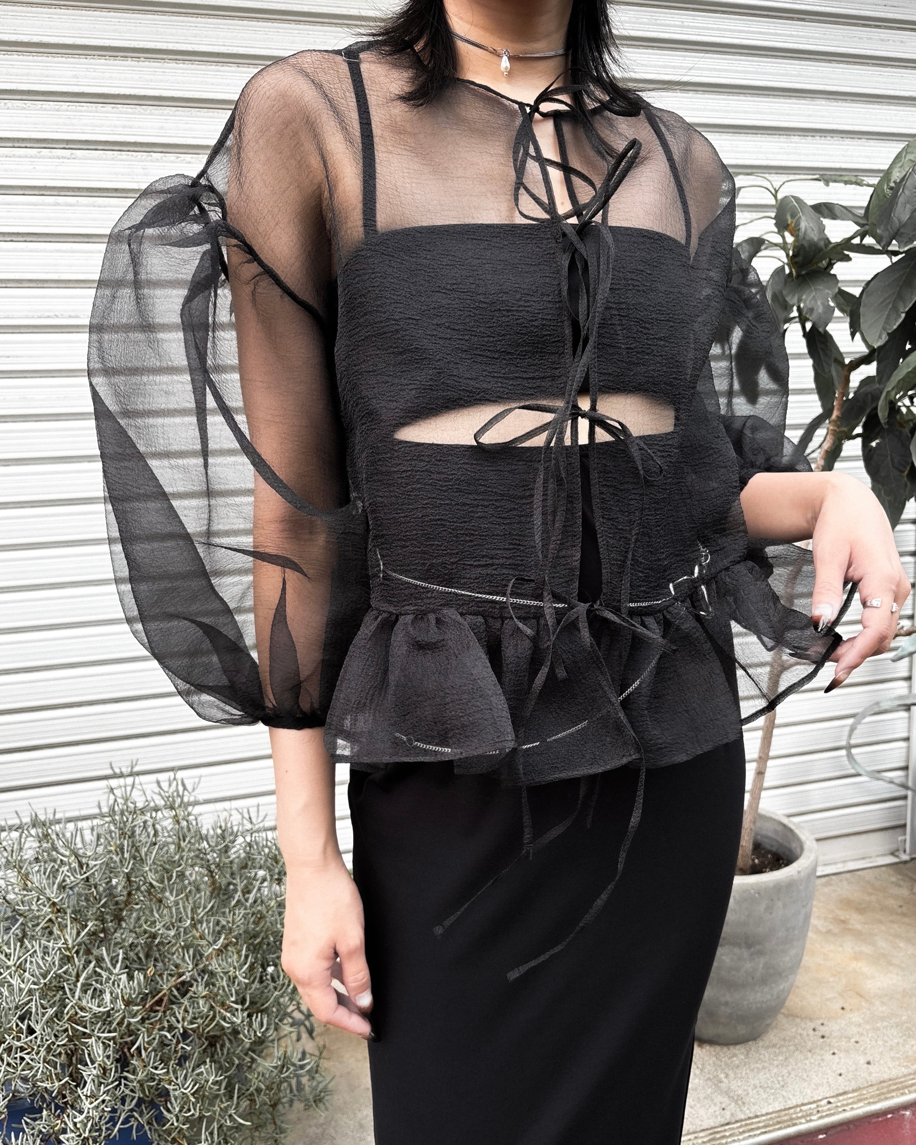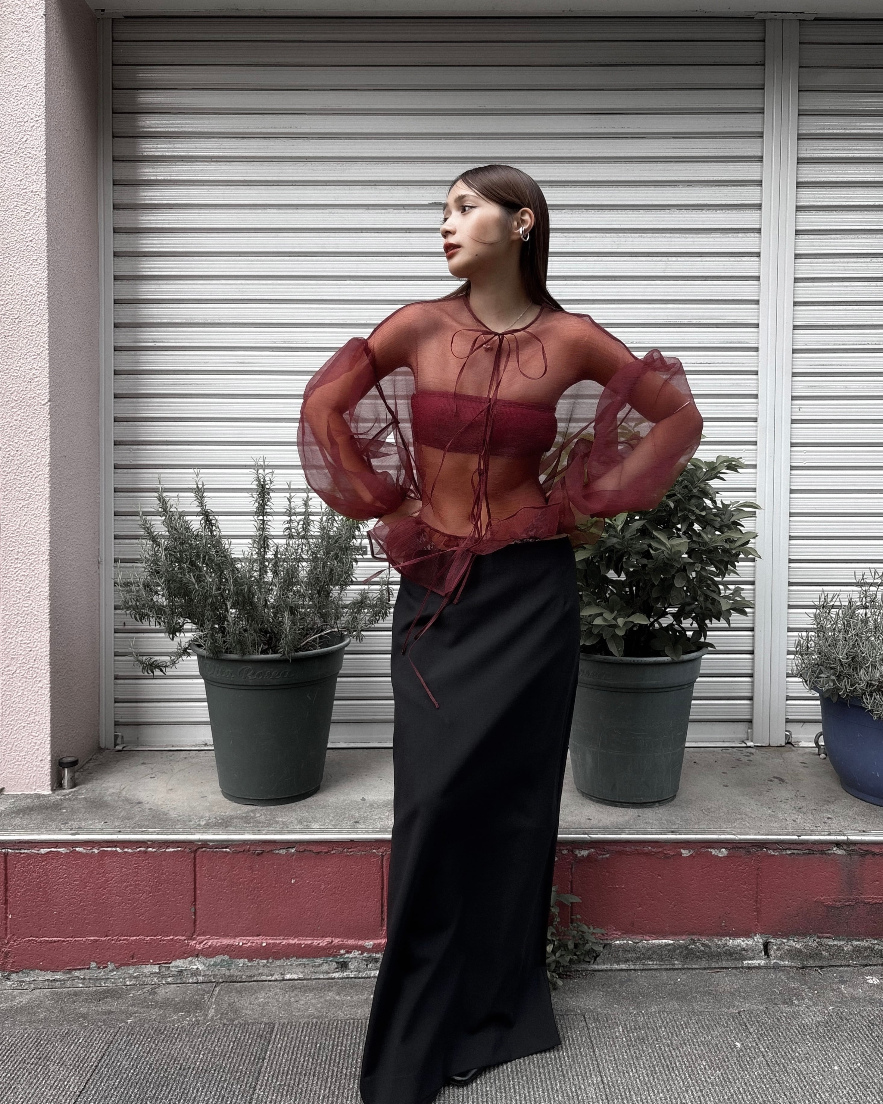 軽やかでシアーなオーガンジー素材が、空気を纏うような軽やかさを演出します。