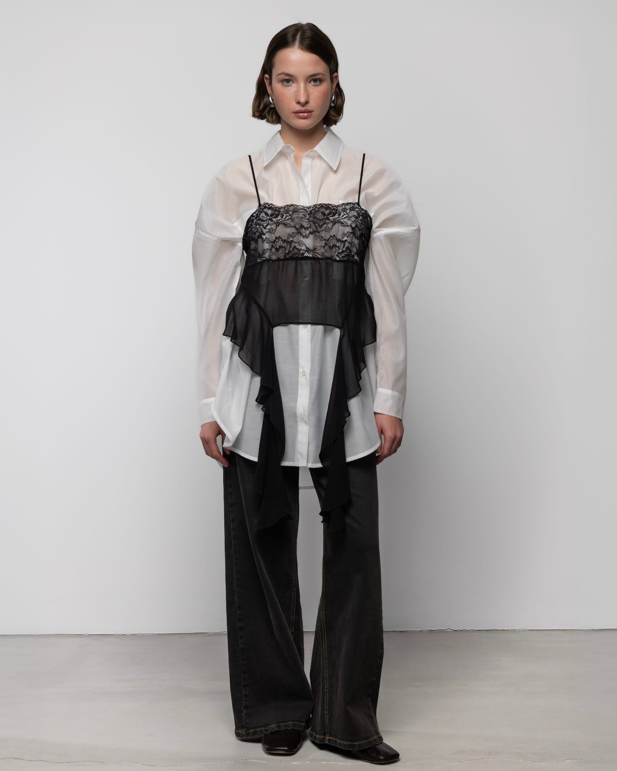 軽やかなシフォン素材を使用したスリムフィットトップ。