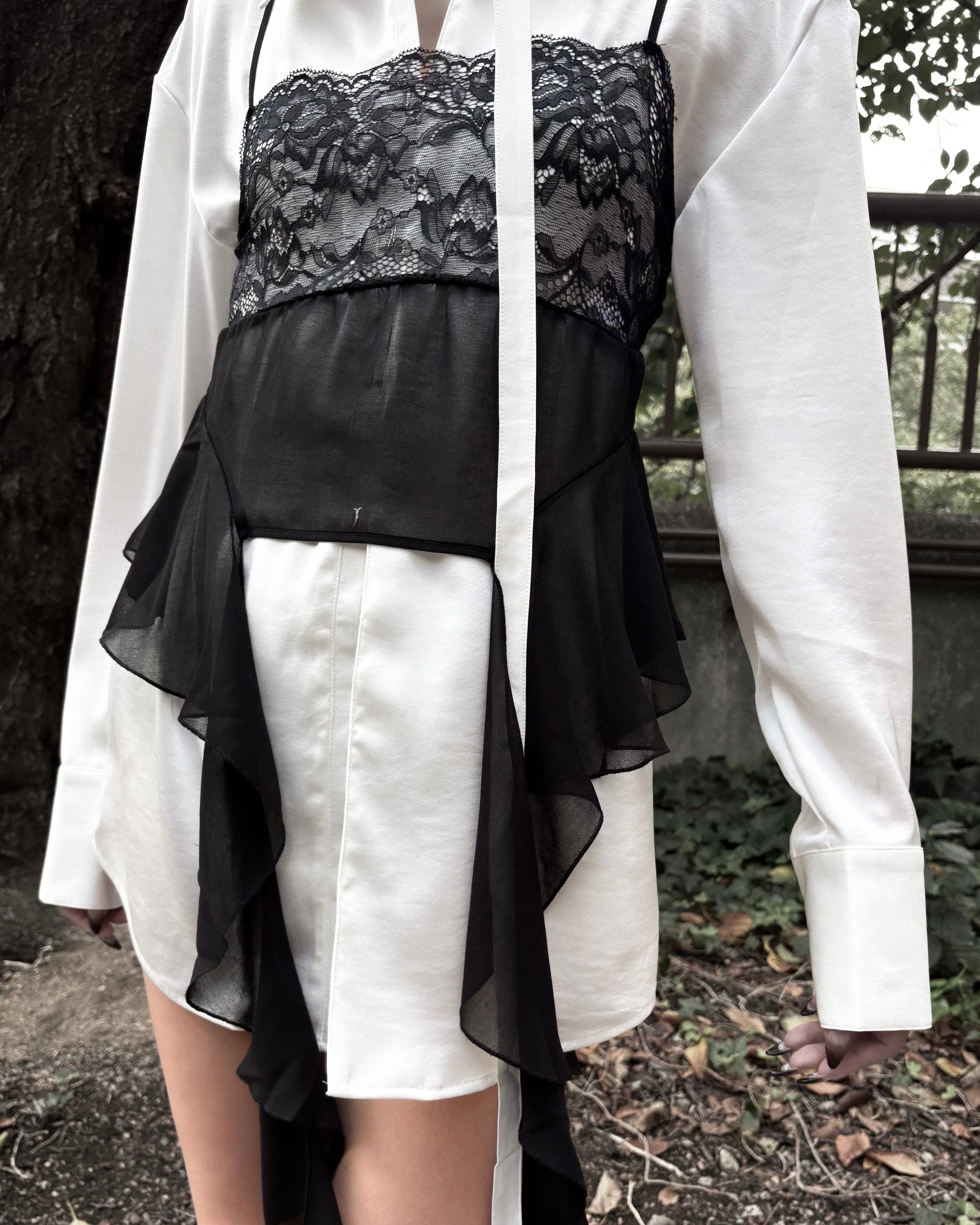 Lace sheer top with frill / ESTHE