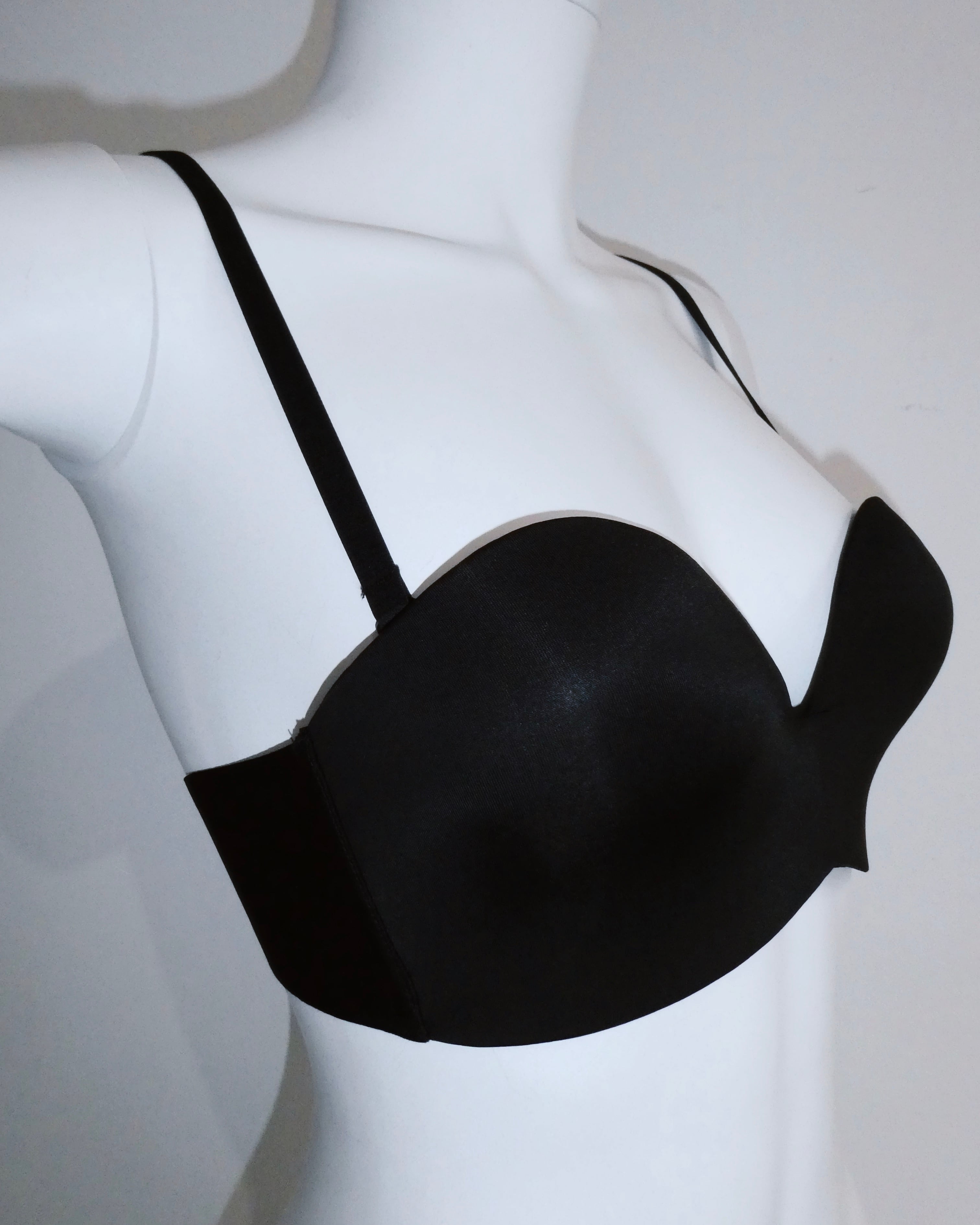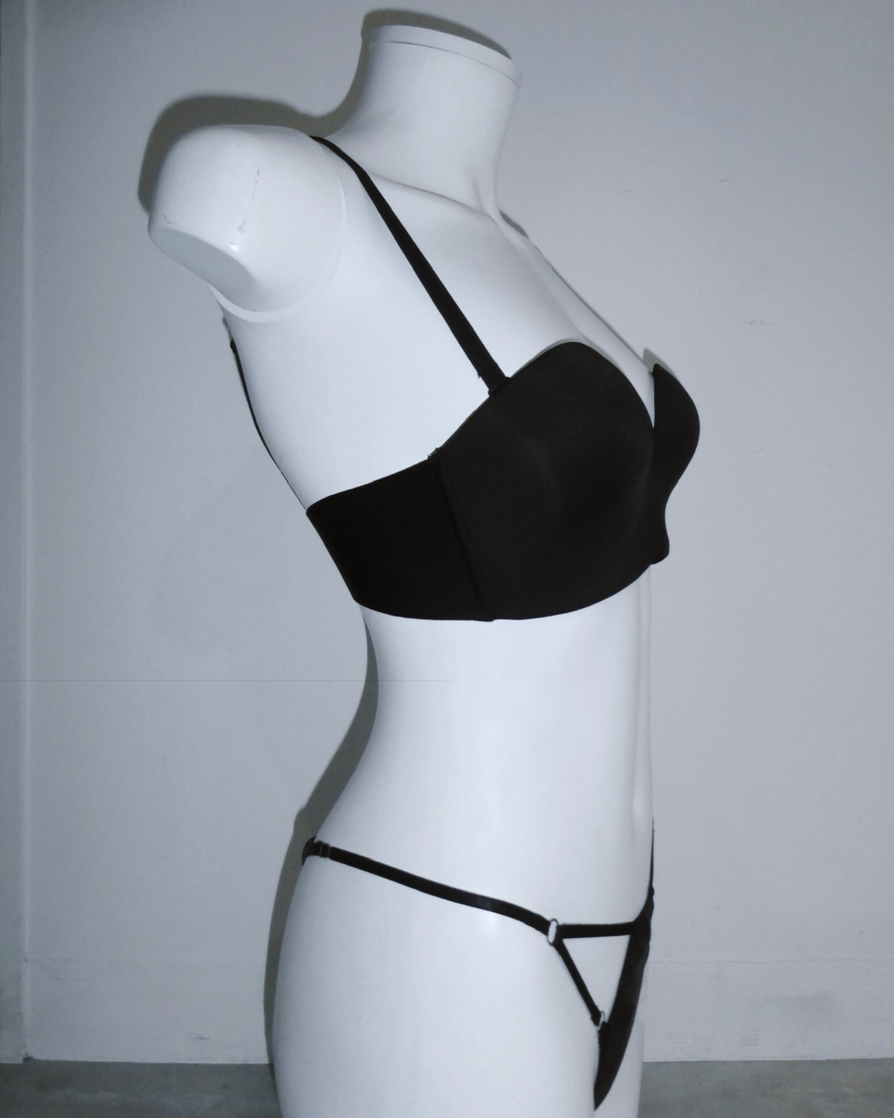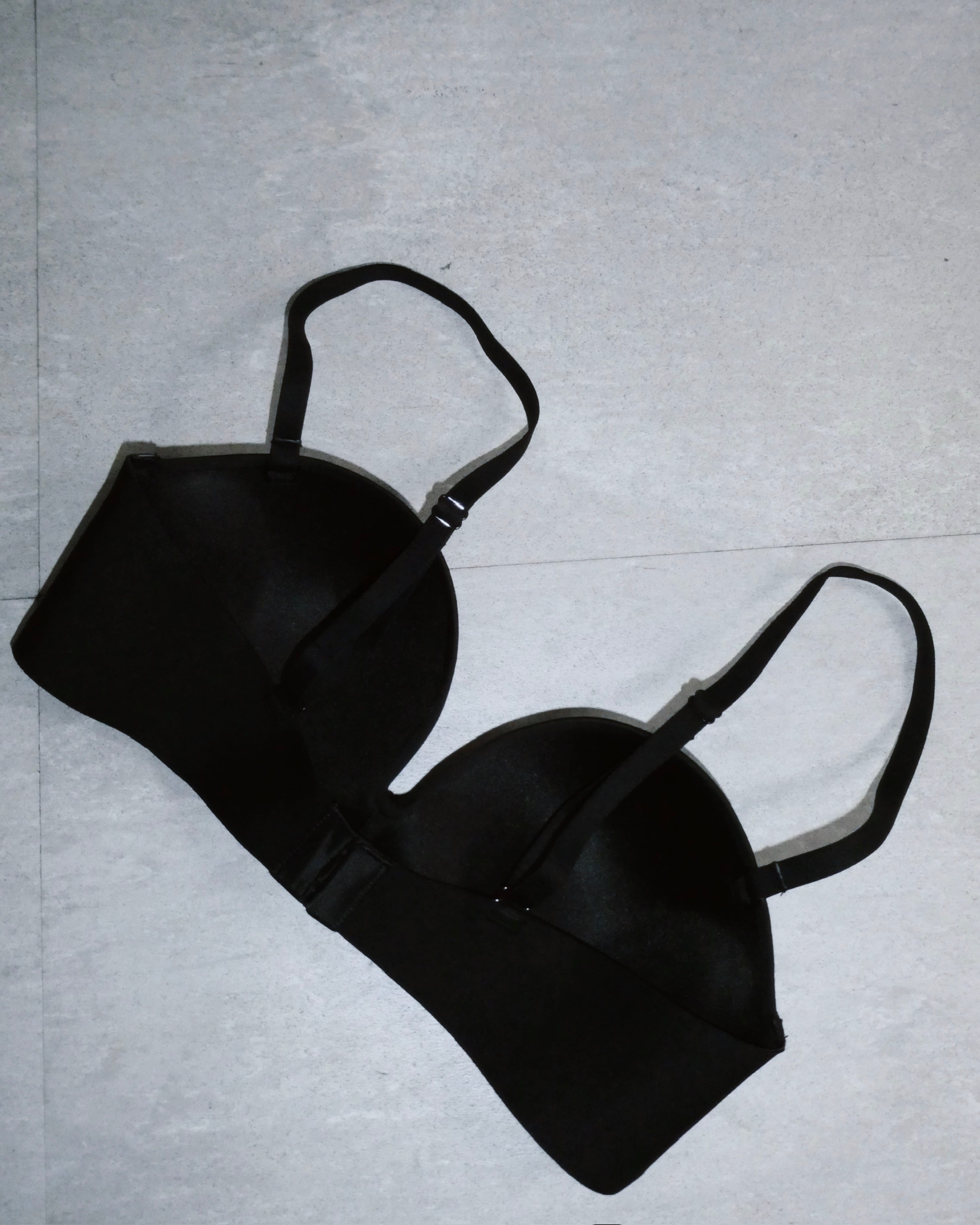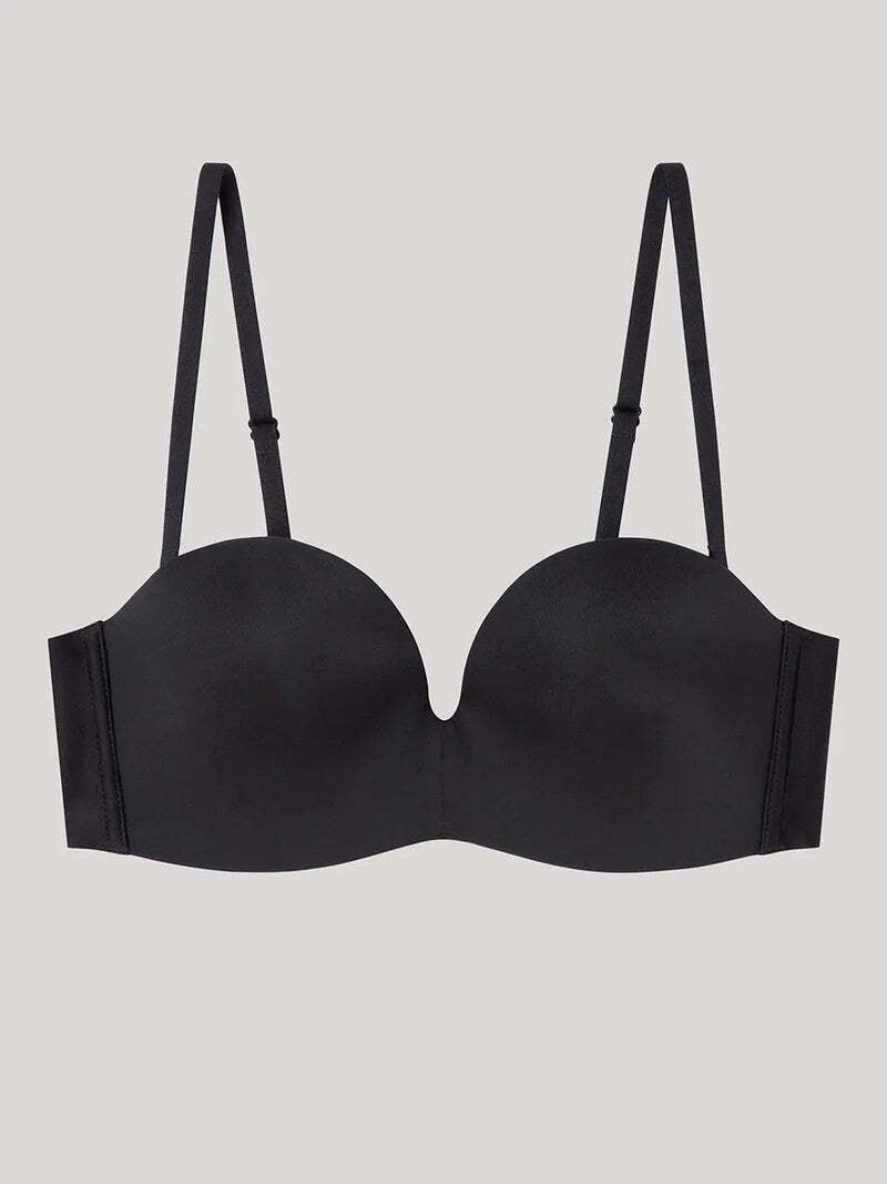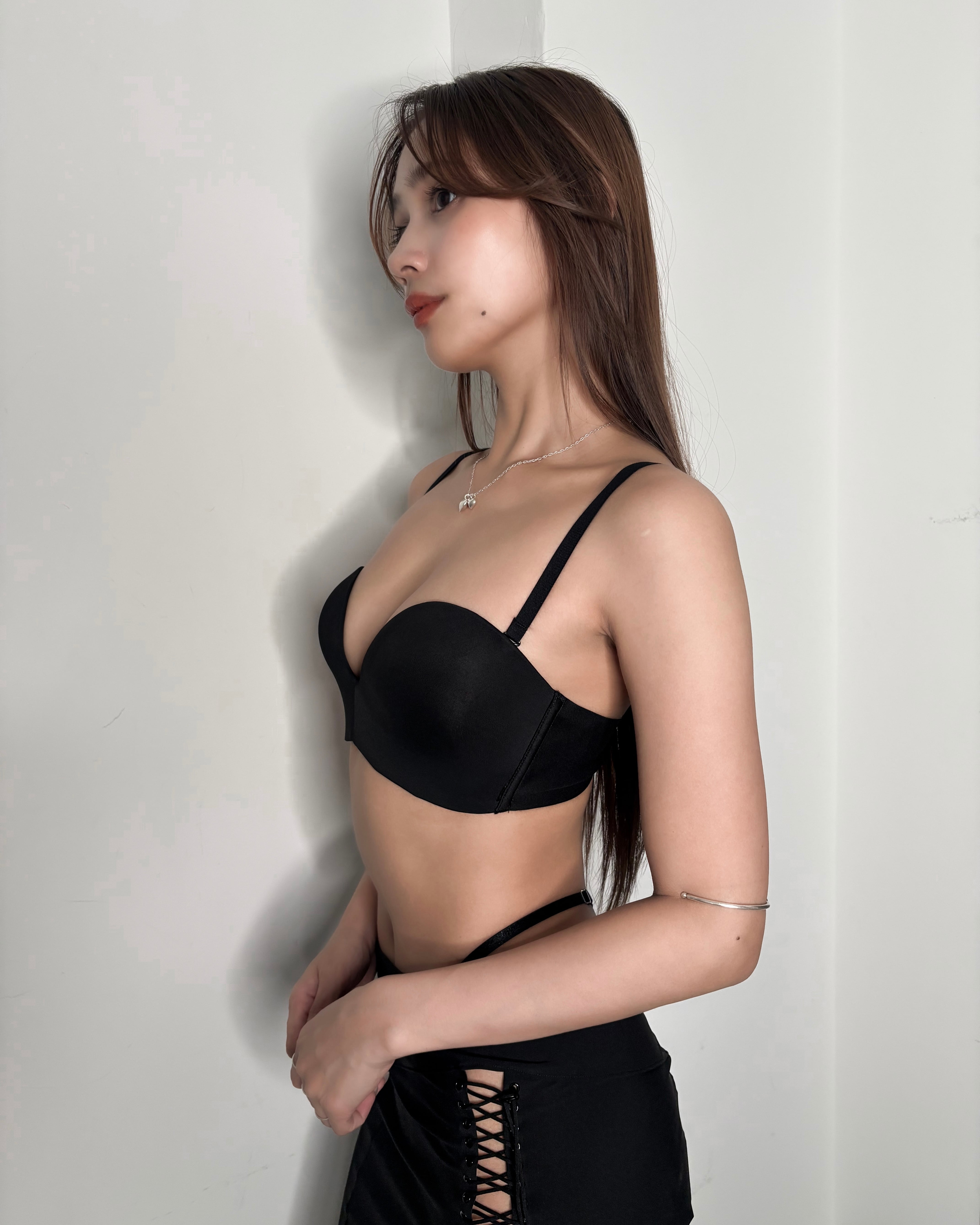 ノンワイヤー&ディープネックのストラップレスブラ。