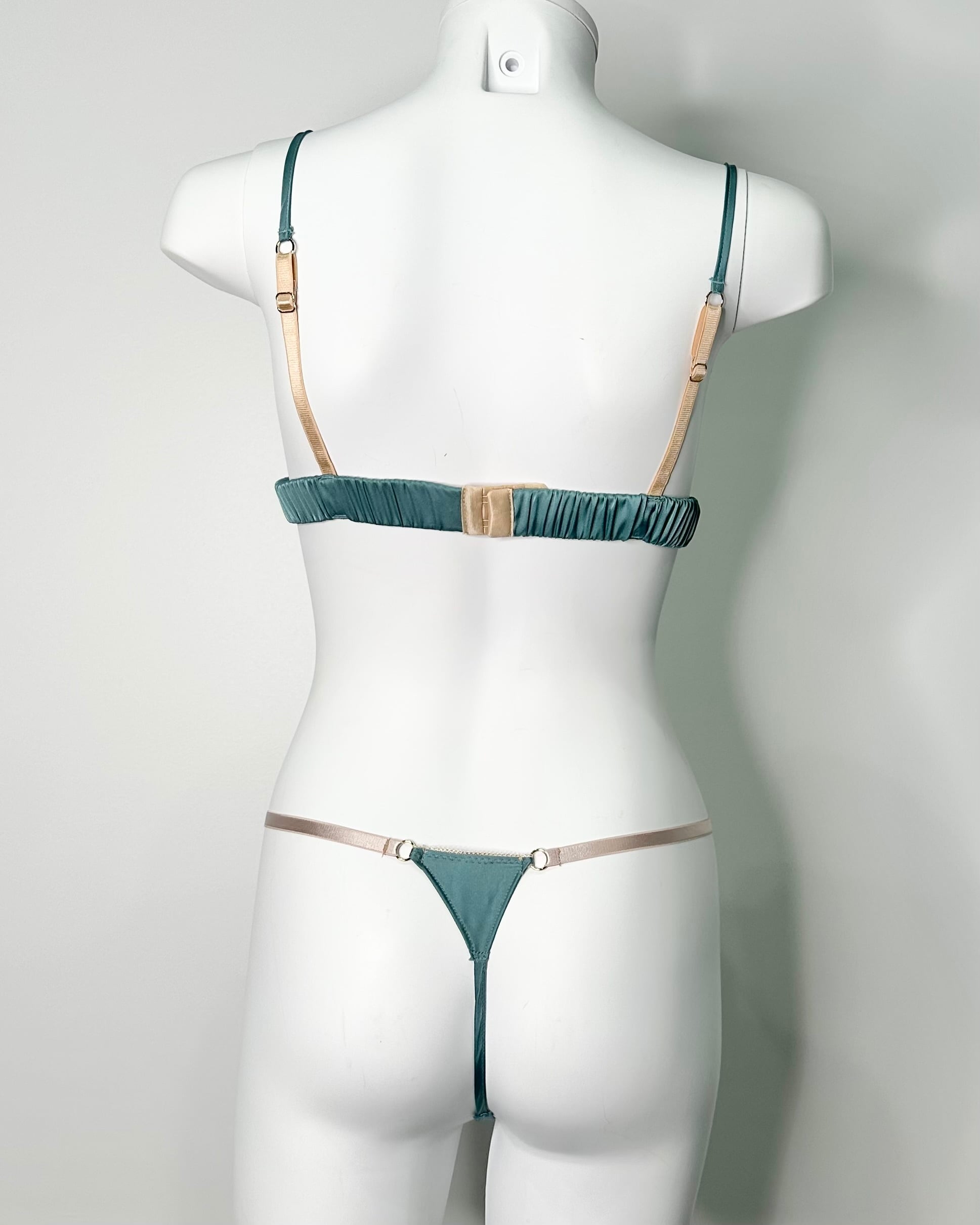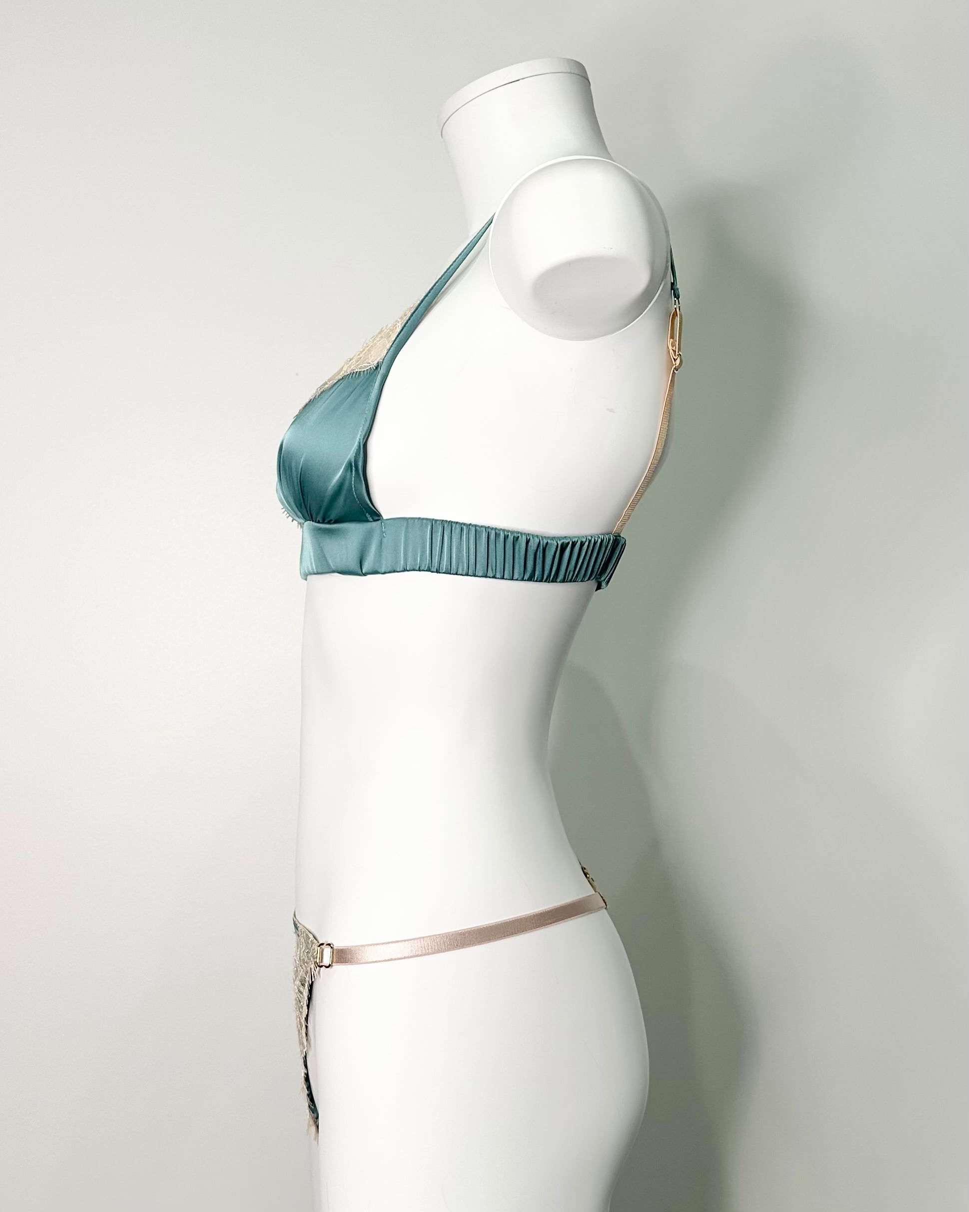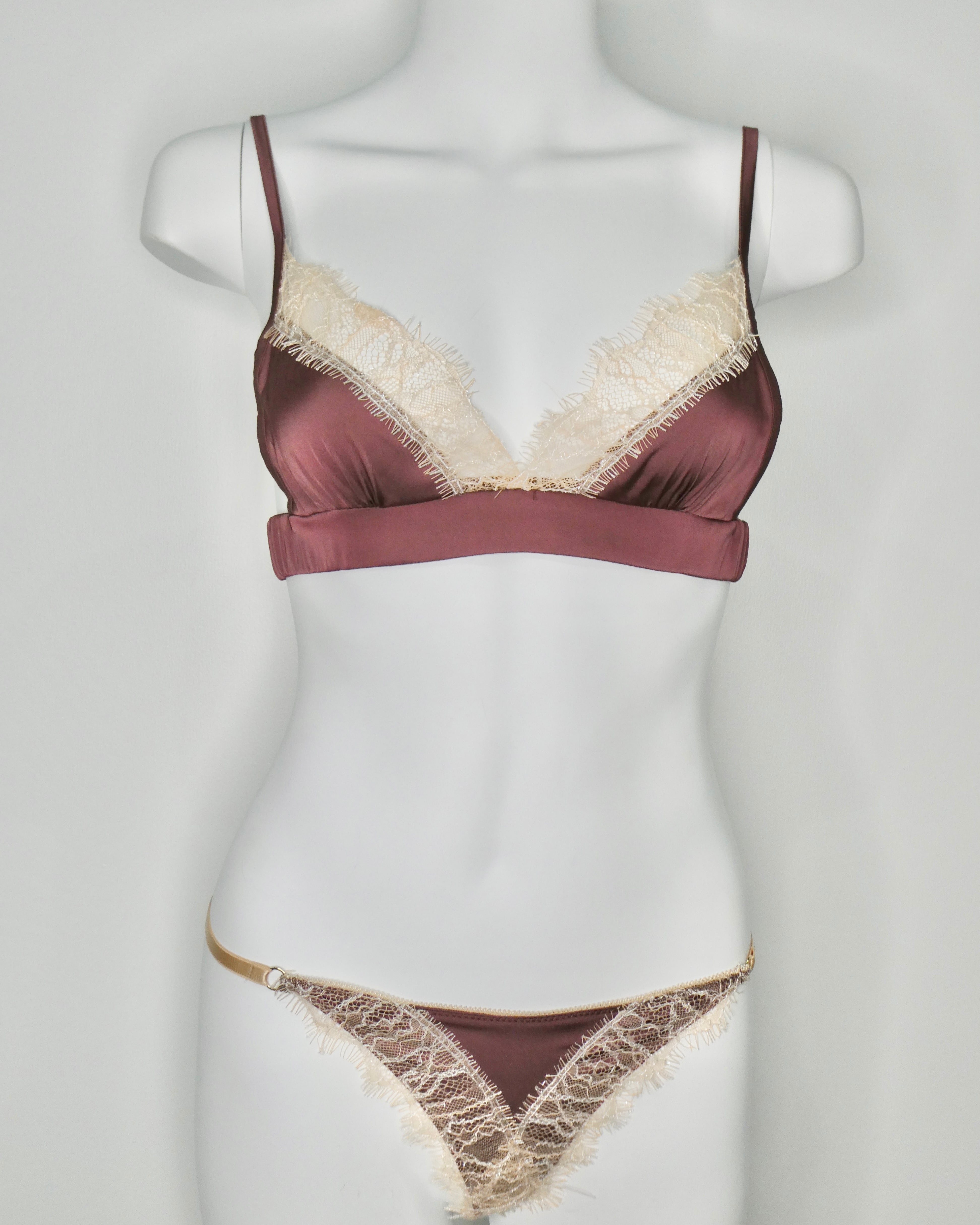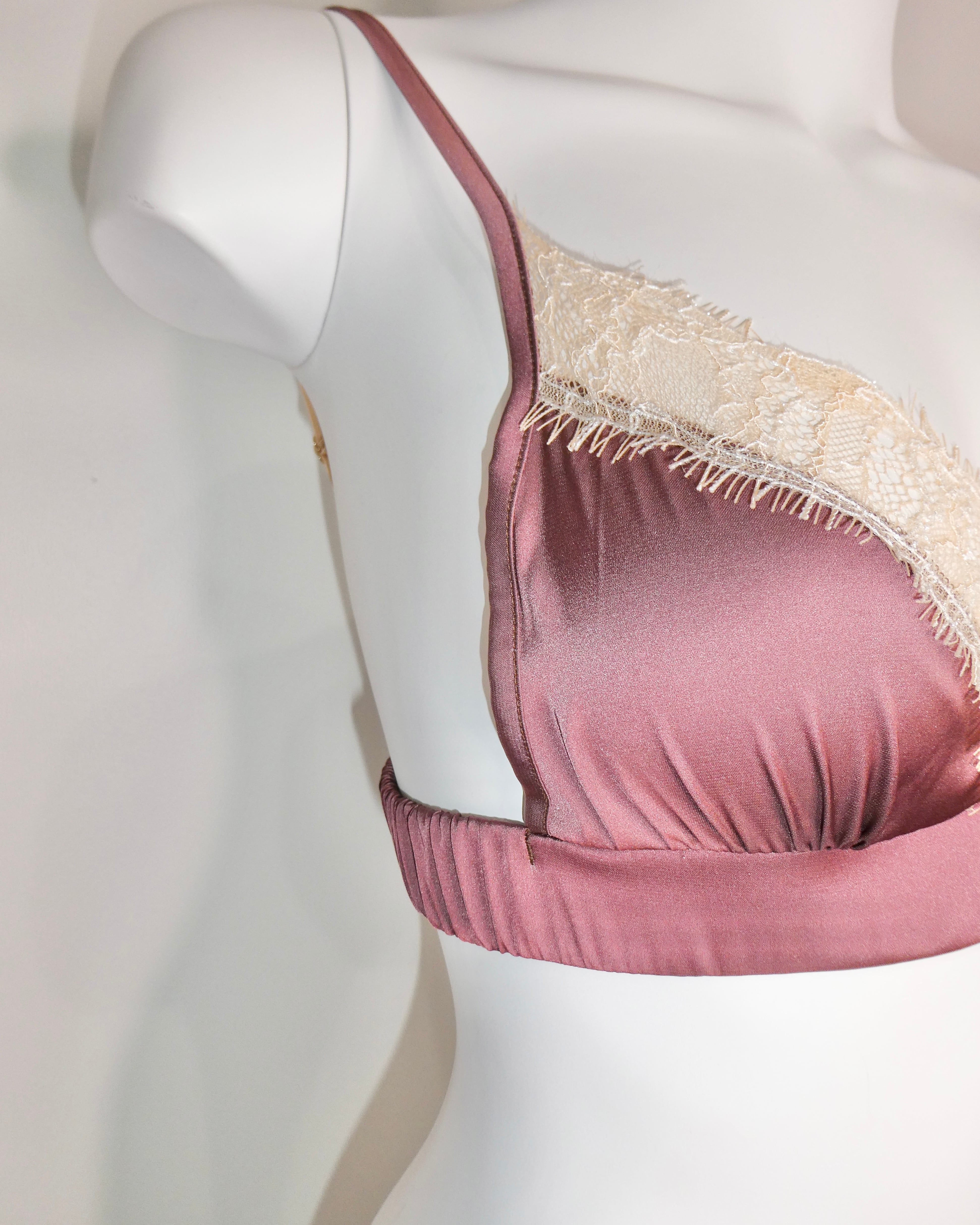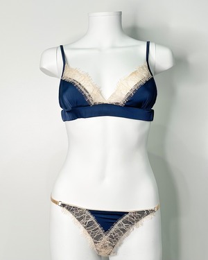 シルク混サテンのドレープ感ある、トライアングルカップが